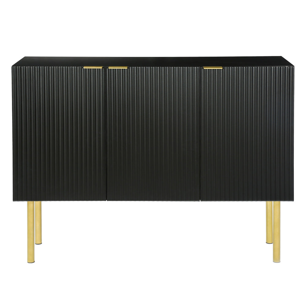 Modern Simple & Light Luxury Style: The design of this cabinet combines the features of modern simplicity and light luxury. Straight line neat and smooth shape simple lines no many decorative elements and pay attention to practicality. The pinstripe design on the door panel is elegant and understated, and the gold metal legs reflect the texture, in line with the characteristics of the light luxury style.