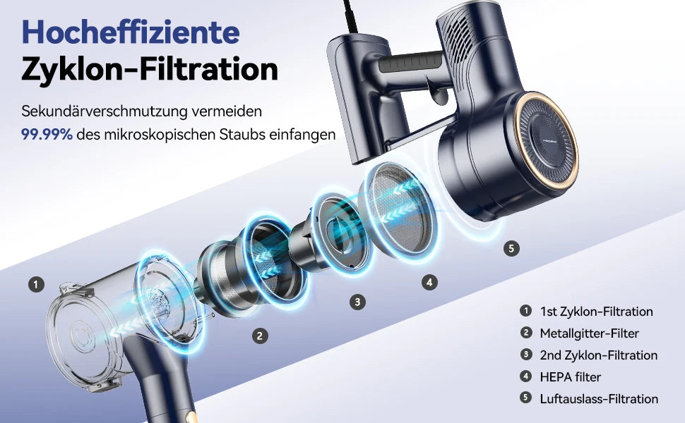 Ultra-long battery life & 99.99% filtration】: this vacuum cleaner with wire effectively solves the problem of lack of battery life, making it the ideal first choice for large tasks and cleaning the whole house. The wire vacuum cleaner is equipped with a complete filtration system including a top mesh filter and a high-density HEPA filter that captures 99.99% of dust particles with maximum efficiency.0.8L dust container empties quickly.