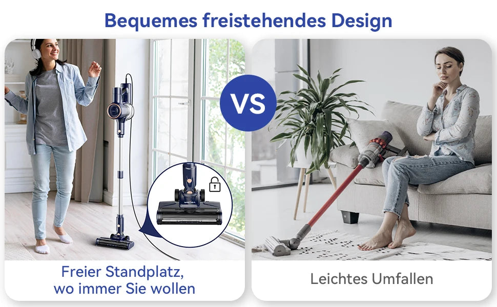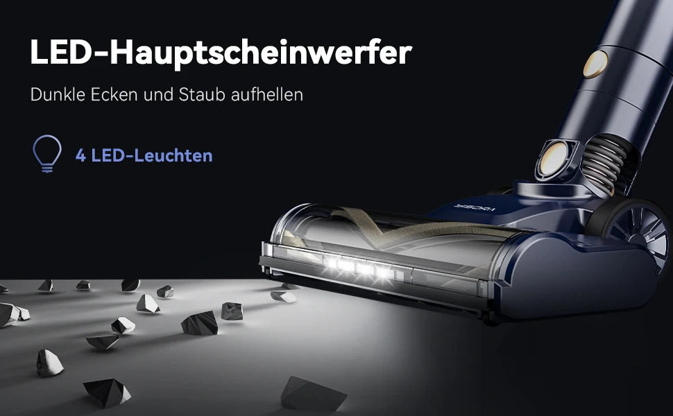 Upgrade Roller & Freestanding】I8 bagless vacuum cleaner features a unique V-shaped design that combines rubber bristles and soft bristles to improve dust removal and reduce hair tangling. On the floor brush there is a button that allows you to remove the brush at the touch of a button, which allows you to quickly clean it. Thanks to its easy to use freestanding design, you can put the product on the floor anywhere and anytime.